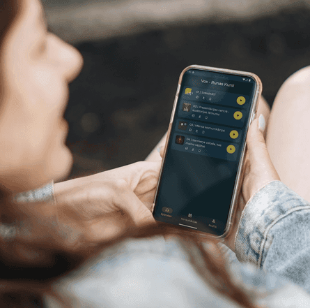 Piedaloties programmā, tu saņem pieeju Vox lietotnei, kurā katru nedēļu tiek publicēts vērtīgs, tavas komunikācijas izaugsmei noderīgs audio saturs un kurā vajadzības brīžos kalendāra sadaļā vari rezervēt sev individuālas konsultāciju sesijas.